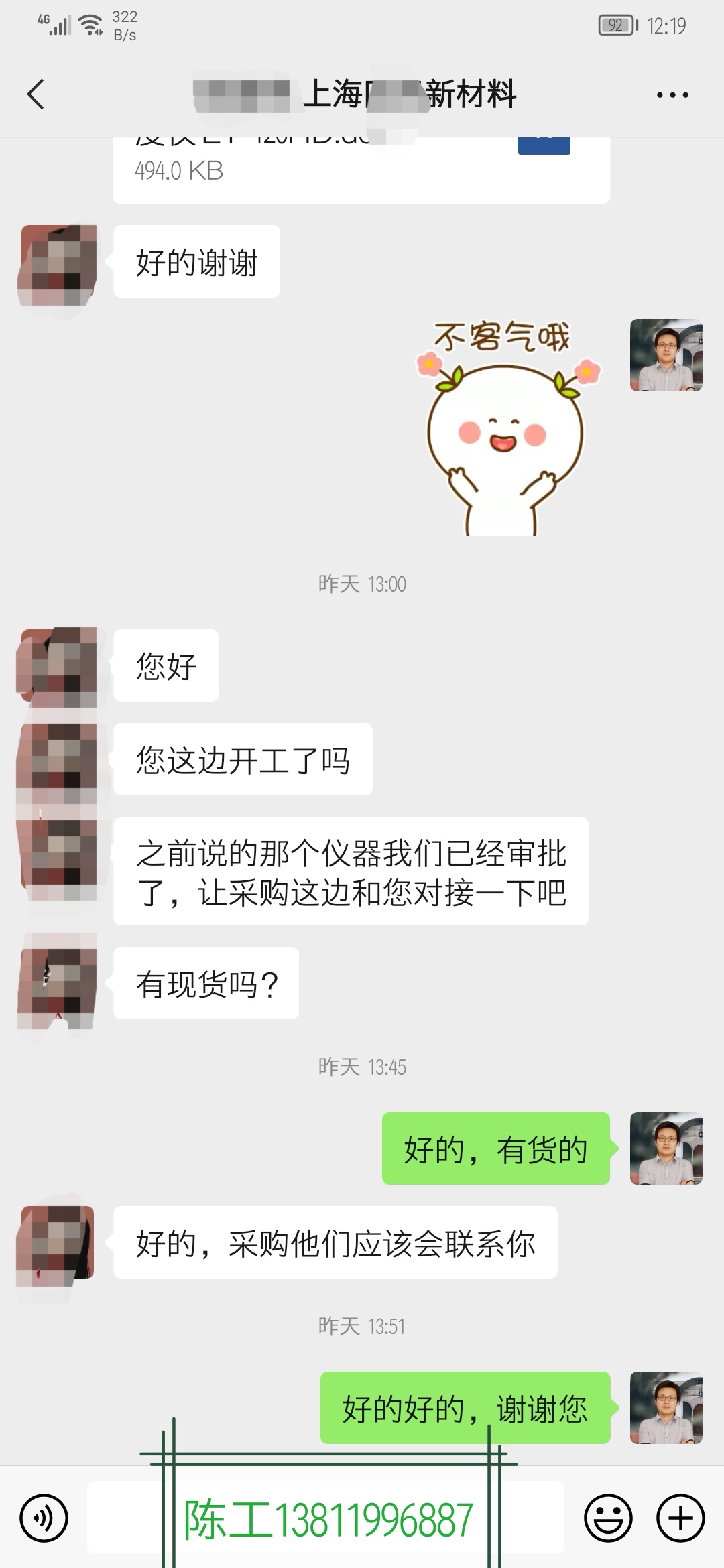 這位上海新材料行業(yè)的客戶,是在年前就寄了樣品過(guò)來(lái)我們幫測(cè)試過(guò),測(cè)量數(shù)據(jù)傳給客戶沒(méi)問(wèn)題后,才一步一步的溝通好達(dá)成合作意向。