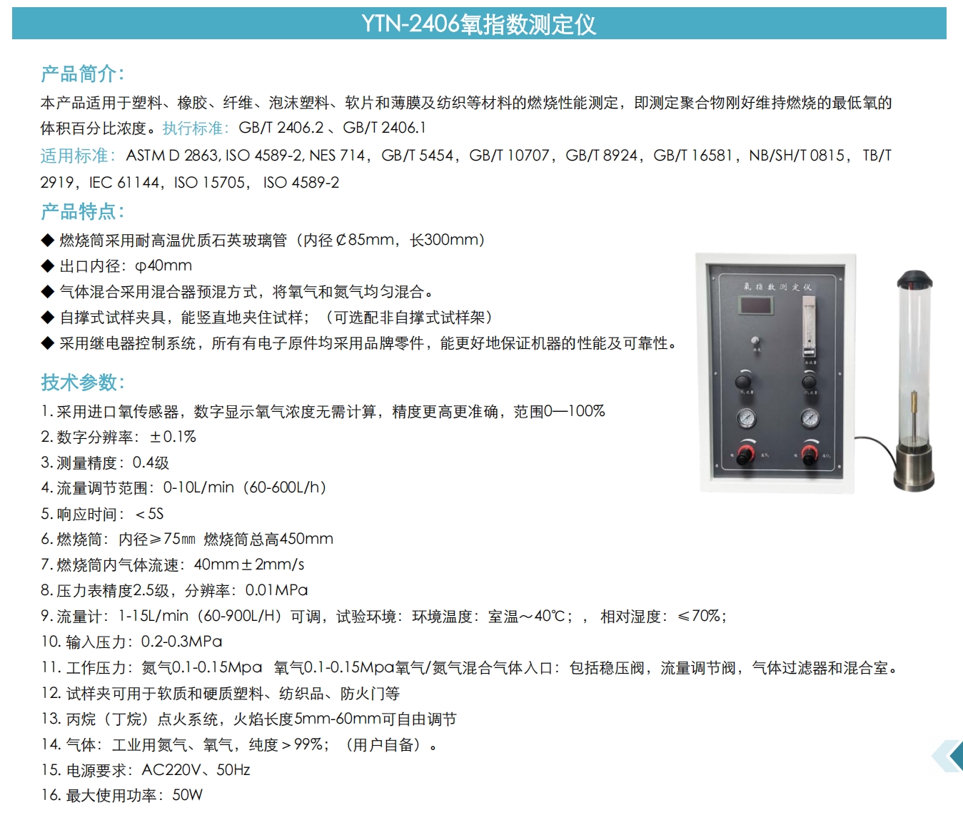 氧指數(shù)(OI值)是衡量材料阻燃性能的重要指標,氧指數(shù)測定儀通過測量材料燃燒所需的最低氧濃度,為阻燃材料研發(fā)提供數(shù)據(jù)支持。